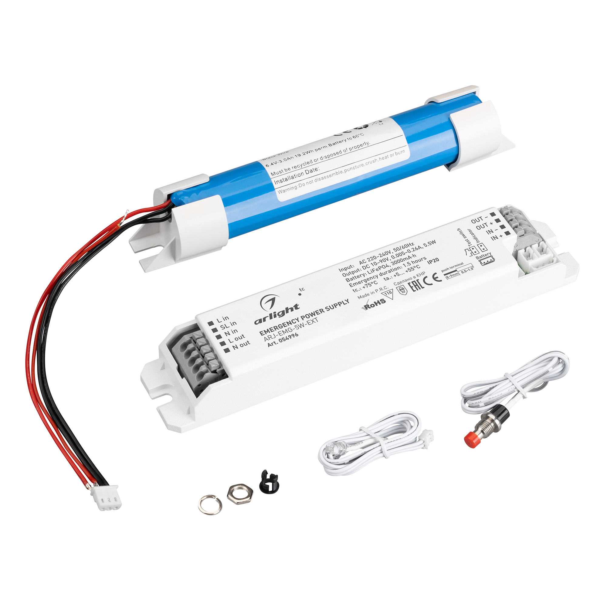 Блок аварийного питания ARJ-EMG-5W-EXT (10-90V, 1.5H, LiFePO4) (Arlight, IP20 Пластик, 3 года) 054996 в Таганроге