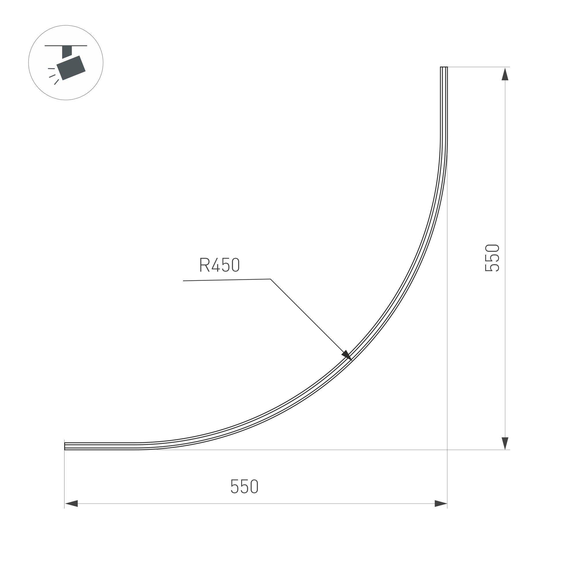 Магнитный трек MAG-MICROCOSM-TRACK-1115-ARC- R900, размер 550 мм * 550 мм, высотой 15 мм, радиусом изгиба 450 мм, с напряжением питания 24В предназначен для накладного монтажа. Цвет черный, заглушки в комплект не входят. Блок питания постоянного напряжения 24 В для подключения трек-системы к сети 230В приобретается отдельно. Комбинируя прямой и радиусный трек можно составлять оригинальные световые линии.